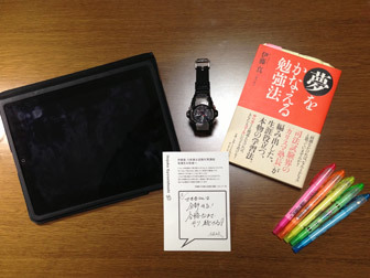思い出の品、愛用したもの:石原講師からのメッセージ、i-Pad、腕時計、伊藤塾長の本、蛍光ペン