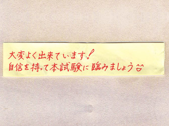 今迄の勉強方法では合格できないのがはっきりわかりましたので、自分の性格にあっている講師の講義を受け、合格ゼミを受講し、試験直前の早起き特訓とチュートリアル講座を受講し、仕事と書道を中断して合格するための生活に変え、仲間を作り勉強を楽しむ環境にしました。
