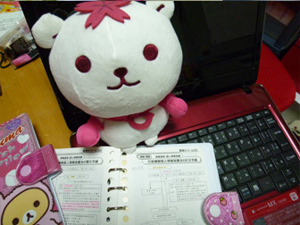 合格者のお姉さんから頂いたぬいぐるみをお守りにしています。桜のマークと合格の頭文字「G」がとても縁起が良い代物です。