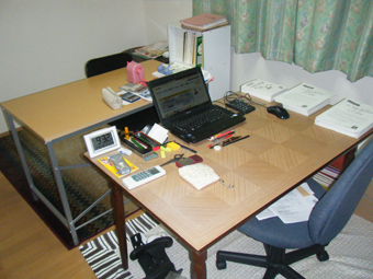 まだ司法書士試験に合格しないといけないので勉強机として使用中です。奥の方は妻の勉強机(土地家屋調査士希望)です。