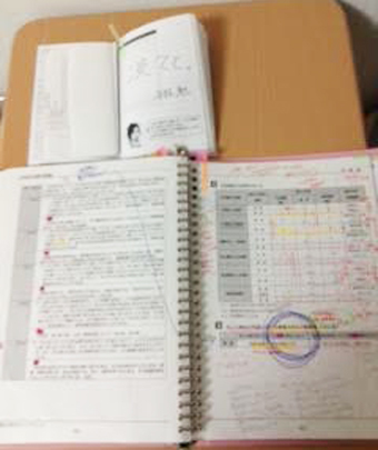 手帳は行政書士合格ハンドブックを使い、学習ノルマなどを書き込んでいました。平林講師にいただいた「淡々と」のコメントは心の支えとなりました。厳選600 肢スピードチェック講義のテキスト。直前期には覚えられない箇所を気合を込めてぐるぐるとマークして過ごしました。