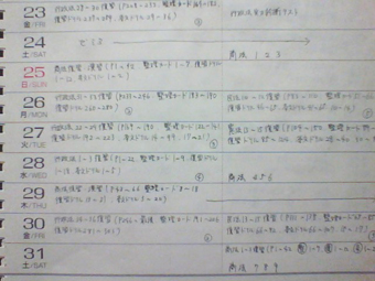 学習スケジュールについては、復習のタイミングが定期的になるように付箋に復習内容を書き、復習が終わったら次回の日付の場所に貼っていく方法で復習の問題間隔を調整しました。