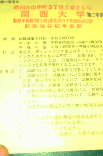 司法書士試験の受験票です。不合格になった受験番号をみることがモチベーションにつながりました。