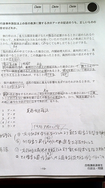 講師が「行政書士合格証」を持ってきて我々受講生に見せてくれたこともありました。講義も中盤に入り、学習も思うように進まず、気持ちが落ち込んでいたときだけに、「よし自分もあの合格証を手に入れるぞ」とモチベ-ションが上がったこともありました。