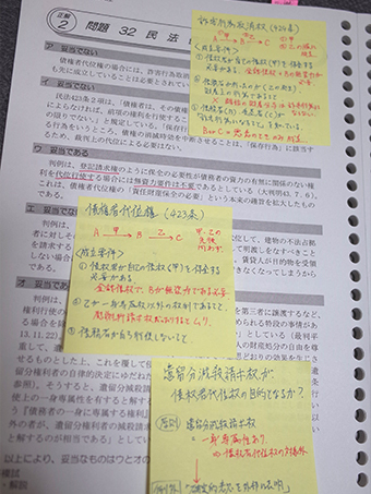 講義の内容から得た気付いた点、講師からの指摘事項をテキストにメモ書きし、後々模試や答練の復習の時に、スムーズに思い起こせるようにしました。