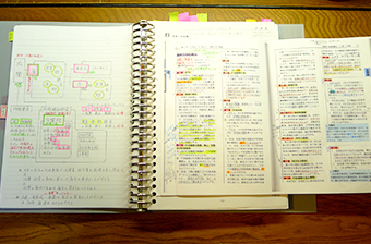 毎回の講義の後に平林講師のブログを使って復習しました。ブログの問題をプリントし、答えが載っているテキストのページを問題の横に記入しておいて、いつでもテキストに戻れるようにしておきました。「合格カード」は学習の進度に合わせて外し、テキストの該当部分に挟みこんでテキストを充実させていきました。