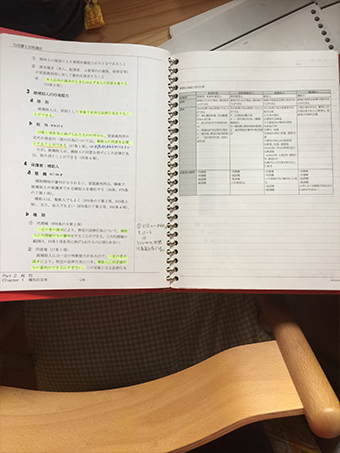 インターネットで講義を聴き、講師が言う復習のポイントを忠実に実行しました。配点の多い民法、行政法については何度も復習を行い、知識を定着させることが大切です。とはいえ学習時間は限られていますから、講師のランク付けを参考に、A、B ランクを中心に苦手なテーマを潰すことを意識しました。