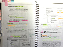 テキストのマーカーは、講義で指摘された所を黄色、問題を解いて分からなかった所を赤と色分けしていました。また、問題でテキストに載っていない知識はテキストに書き込むようにしていました。