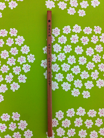森講師の最終講義でいただいた、湯島天神のおまもり鉛筆。「あせらず、たゆまず、おこたらず。」