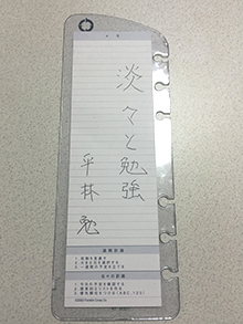 平林講師から書いていただいた手書きのメッセージ。手帳のしおりとして毎日見て頑張りました。