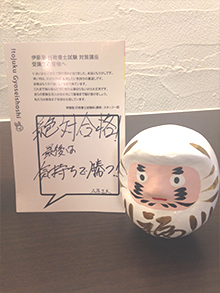 ずっと見守ってくれた主人、励ましていただいた伊藤塾の方々はもちろんのこと、一緒に勉強してきた仲間の存在は本当に心強く、何度も助けられ感謝の気持ちで一杯です。本当にありがとうございました。