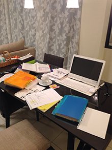 すぐ勉強に入れるよう、ダイニングテーブルを占拠していました。