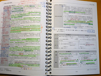 1年目の受験ではみんなが正解できる問題が解けなかったのが敗因でしたので、2年目は徹底した基礎固めをしようと考え、「上級インプット講義」のテキストを使い、繰り返し勉強しました。またアウトプット対策としては、「完成問題集」や「伊藤塾の行政書士一問一答800」(法学書院)を使い、インプットしたら問題を解き、間違ったところはまたテキストに戻ることを繰り返しました。よく間違えるところは付箋紙を付けて何度も勉強しました。