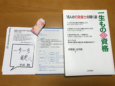 これから行政書士を目指す皆さんへ。最後まであきらめなければ、必ず合格できる試験だと思います。焦り、不安、いろいろな事情はあると思いますが、最後まであきらめないで頑張ってください。