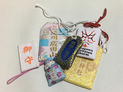 受験を応援してくれていた友だちからもらった、たくさんの御守り。京都の友だちは、学問の神様で有名な北野天満宮「なで牛」の画像を送ってくれて、合格できるよう、勉強の合間に画像の牛をなでたりしていました。