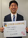 坂本講師は1日6コマの講義も常に全力投球し、受講生が講義後1時間ほど教室に残って復習している間も、質問の有無に関係なく、終わるまで待機していてくださいました。また、直前期のカウンセリングでいただいた激励の言葉は、本試験まで大きな心の救いとなりました。私が合格できたのは、坂本講師のおかげです。本当にありがとうございました。心より感謝いたします。