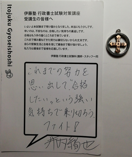 それと、いつも勉強机に置いていた私のお守り。これも試験会場に持っていきました。