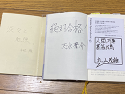 左、初めて平林講師にお会いした時に書いていただいた言葉。