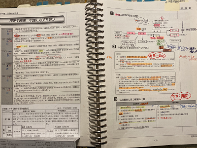 毎年不合格の年は、過去問・問題演習中心の学習を8月頃から始めていました。昨年は3月頃から過去問をできるだけ解く様にスケジュールを考え、不得意な民法はセレクト問題を中心に解きまくり、行政法は過去問を中心に、その他の科目は答練と模試を中心に繰り返し解きました。模試は他校も含めて10回以上受けました。昨年は模試で行政法を15問程度取れた事が続き、直前期は民法にウェートを置いてしまった為か、本番では行政法を得点源にできなくて152点の状態で記述待ちの状態に・・・正直なところは合格できると思えませんでした。