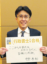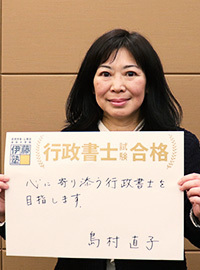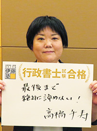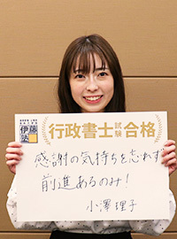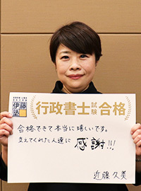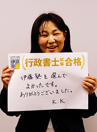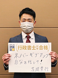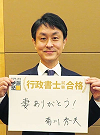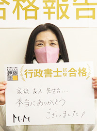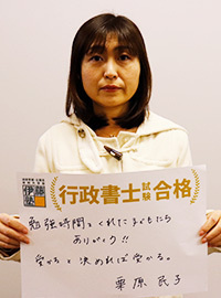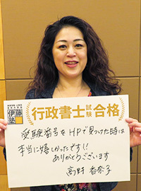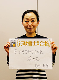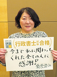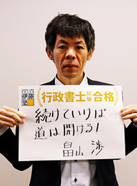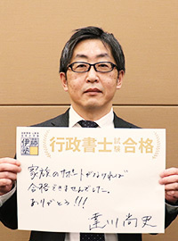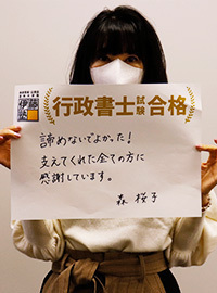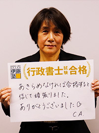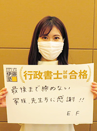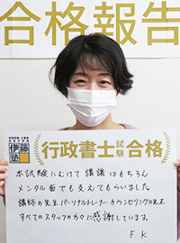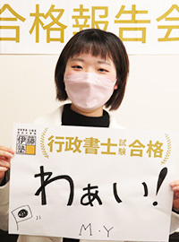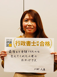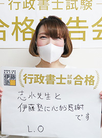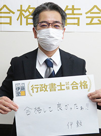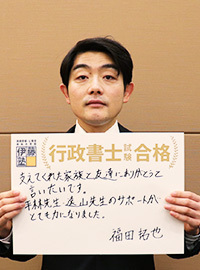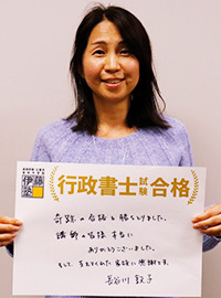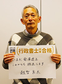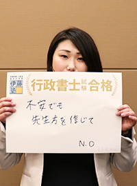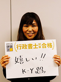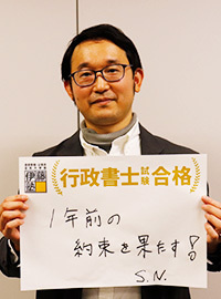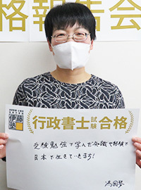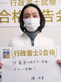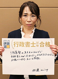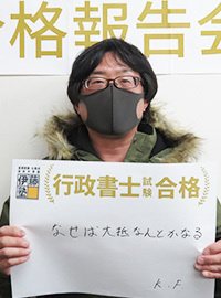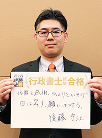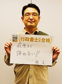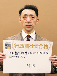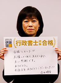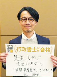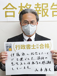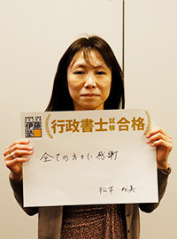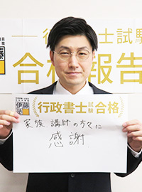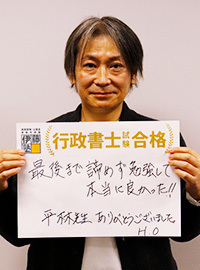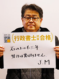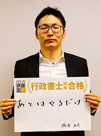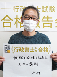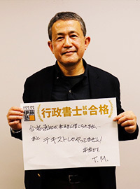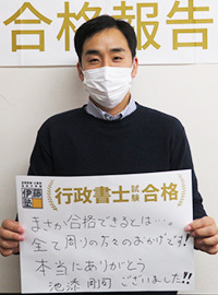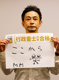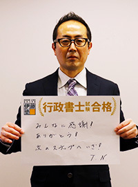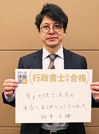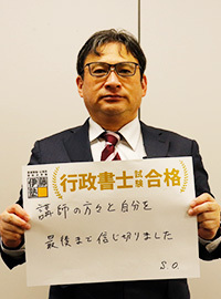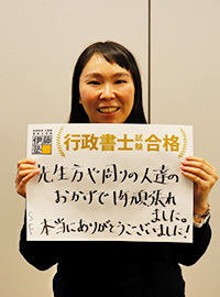 速修生担当の坂本講師をはじめ、行政書士試験科講師の方々の お話を信じて学習を進めた結果だと大変感謝しております。