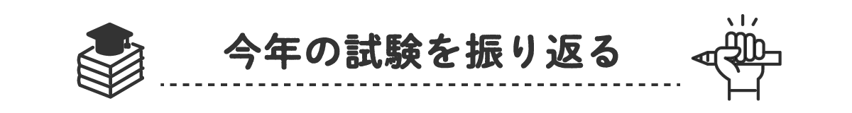 思うように力が発揮できなかった方は、早めに来年に向けて準備をしましょう。科目数が多い試験なので大変ですが、コツがつかめると一気に力が伸びることがあります。今ある知識が抜け落ちないうちに来年に向けて準備を開始しましょう。