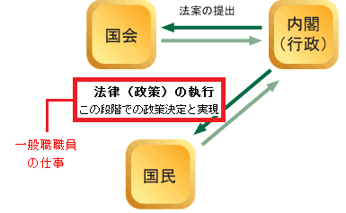 国家公務員一般職試験に合格し省庁または出先機関に採用されると、中堅幹部候補としての道を歩むこととなる。
