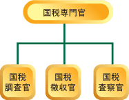 国税調査官、国税徴収官、国税査察官の3つの職種がある。