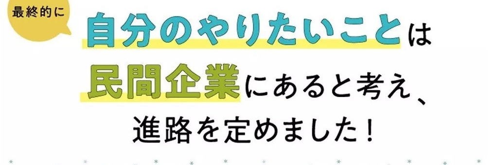 併願しようと思ったきっかけは、公務員と民間、 どちらがより自分が楽しく仕事ができそうか、3年生の夏の段階でわからなかったためです。 伊藤塾では、志望先を選ぶうえで自分が何を為したいのかよく考えておくように指導されるので、 自分の軸に沿って民間就活を進めることができたと思います。