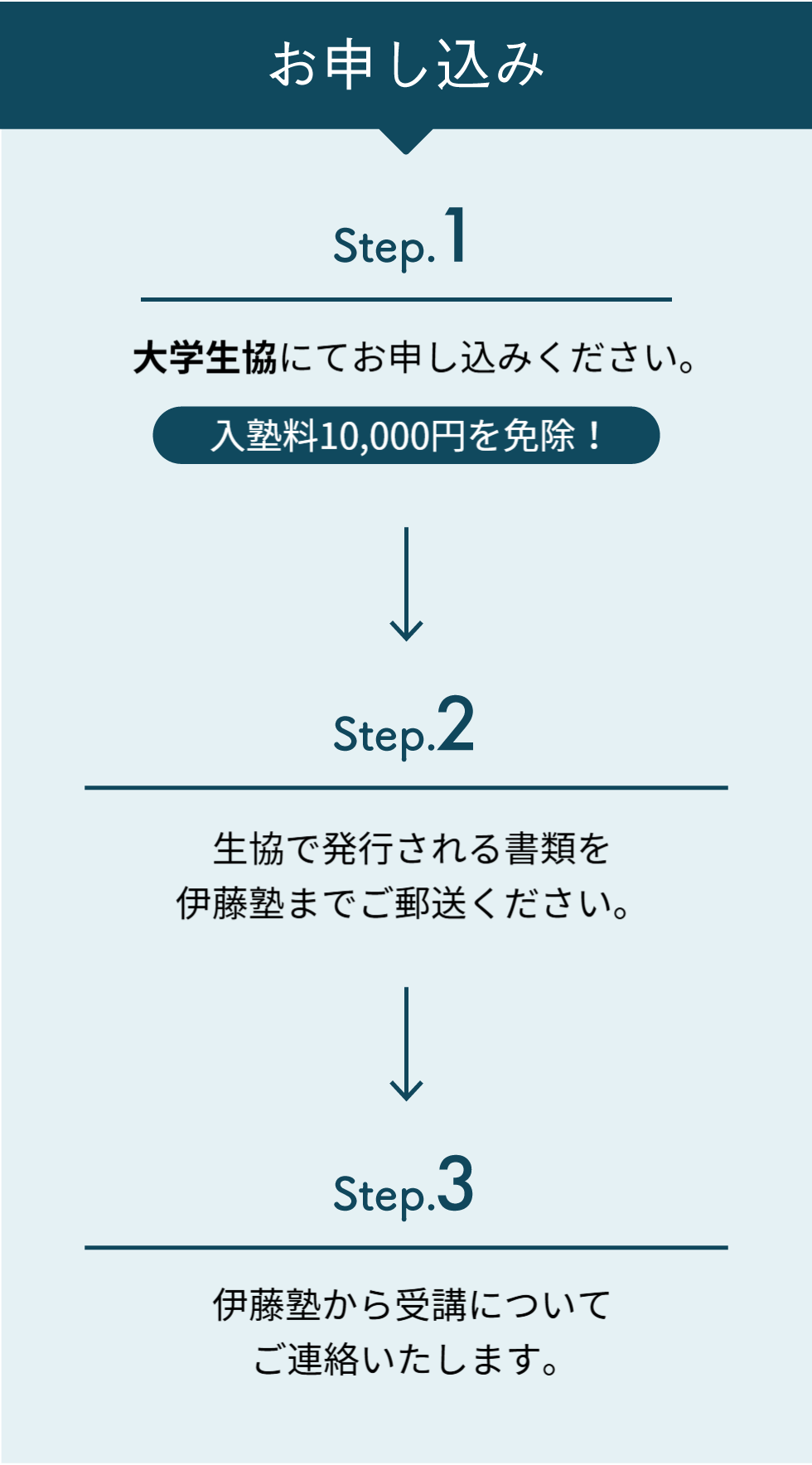 同志社生協からお申込いただくと、入塾料10,000円免除!