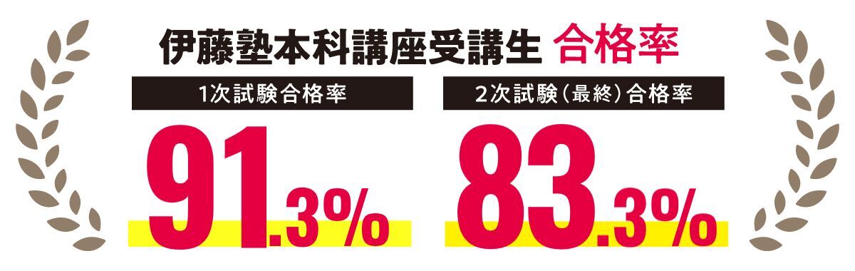 ※2023/8/3木時点。解答番号調査の結果と受講生の皆様からの報告状況。1次合格率は1次合格者/1次受験者、2次(最終)合格率は2次合格者/2次受験者。