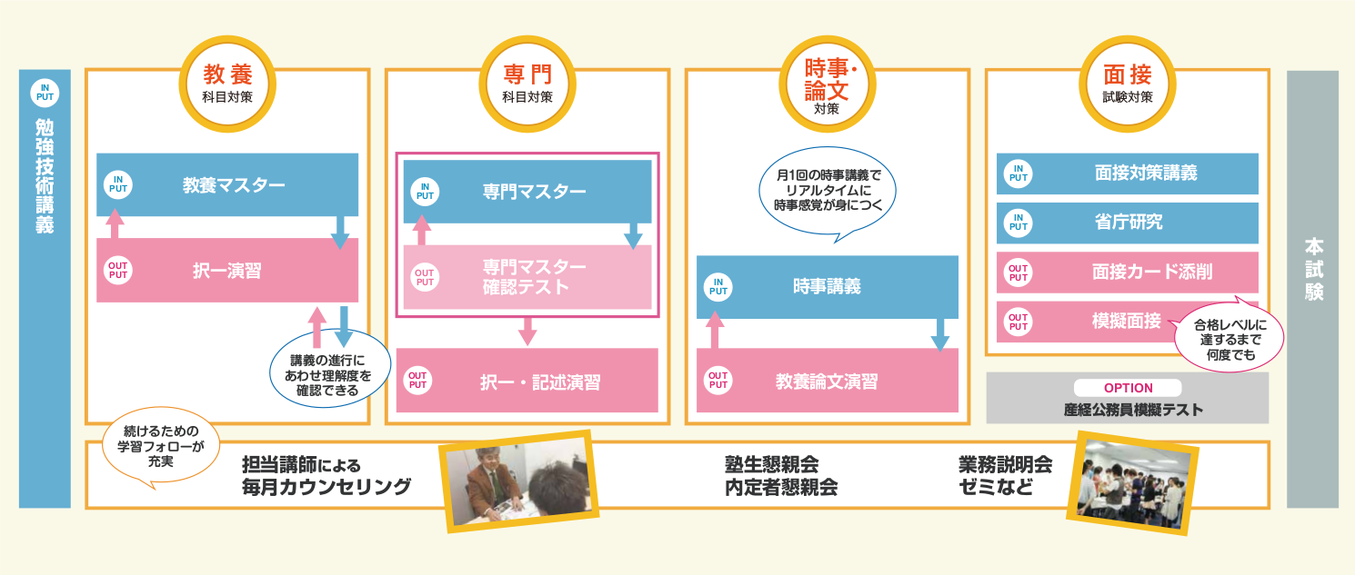 地方上級公務員および国家公務員一般職を目指す方のためのコース。合格・内定に必要な全ての対策を含みます。