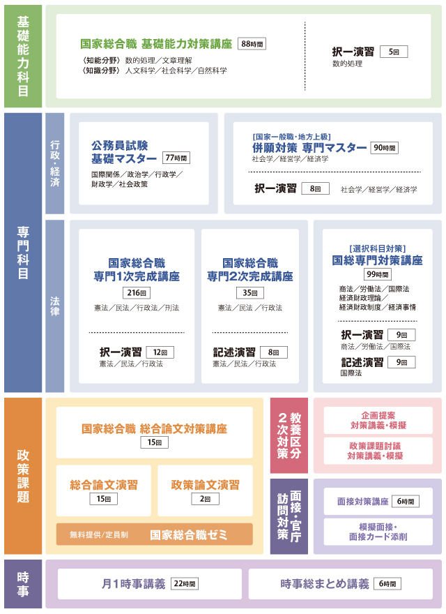 *各対応試験と試験合格後の官庁訪問対策をカリキュラムに含みます