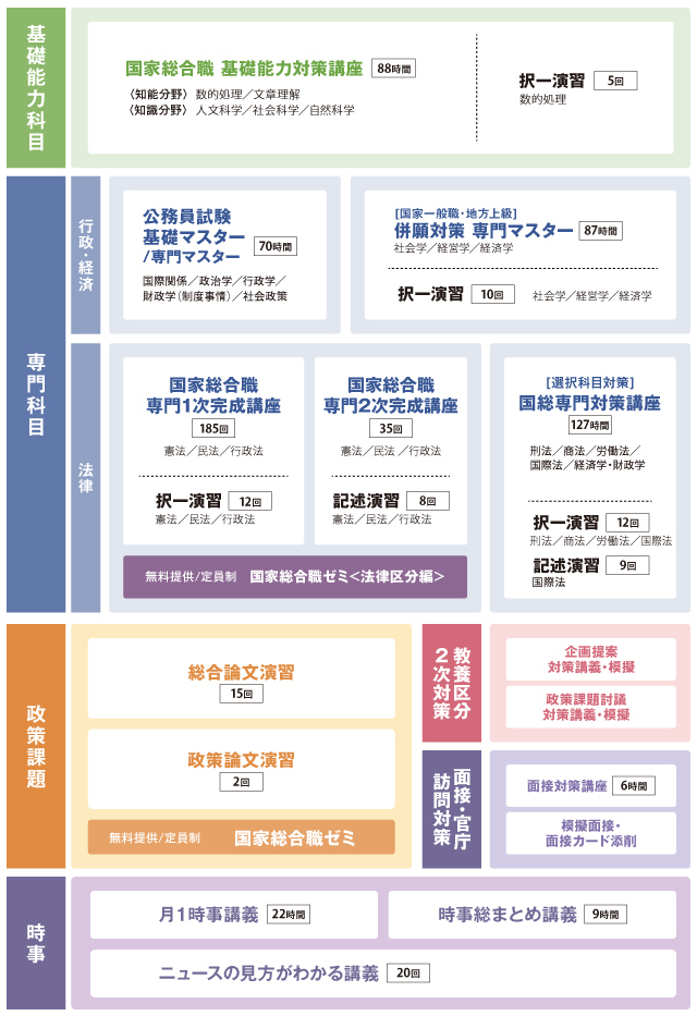 *各対応試験と試験合格後の官庁訪問対策をカリキュラムに含みます