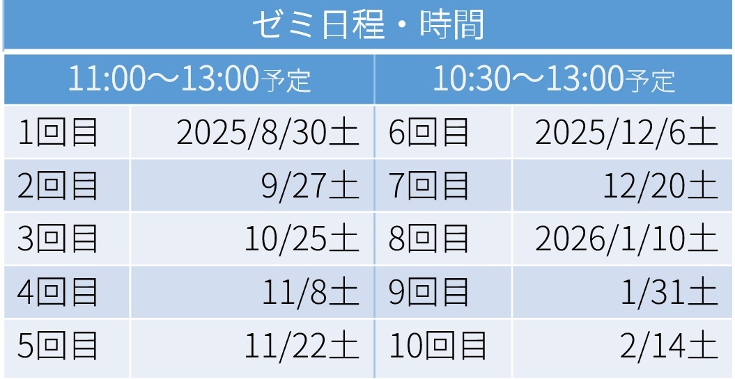 2025年合格目標ゼミの例。目標年度により回数が異なる場合があります。