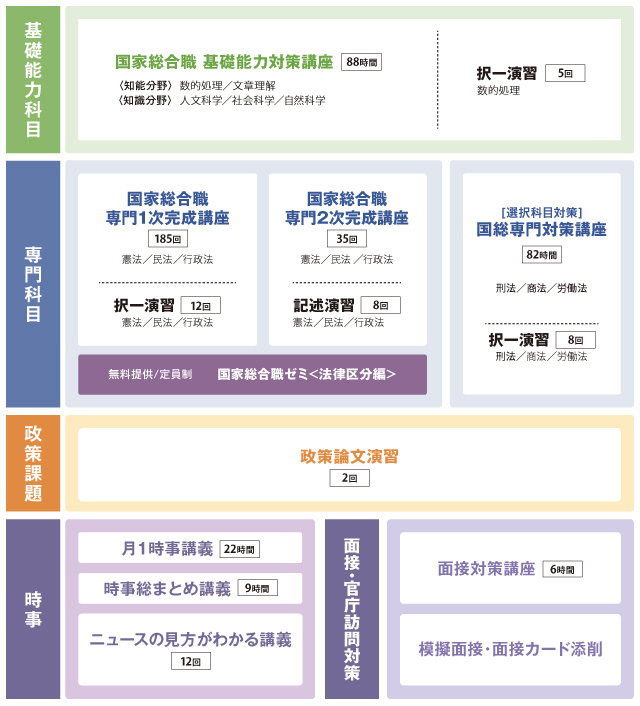 【講義】20回(前期8回:国家総合職教養区分対策/後期12回:春試験対策)