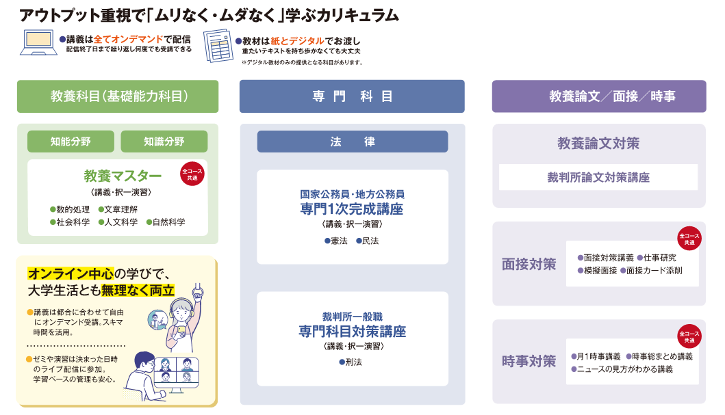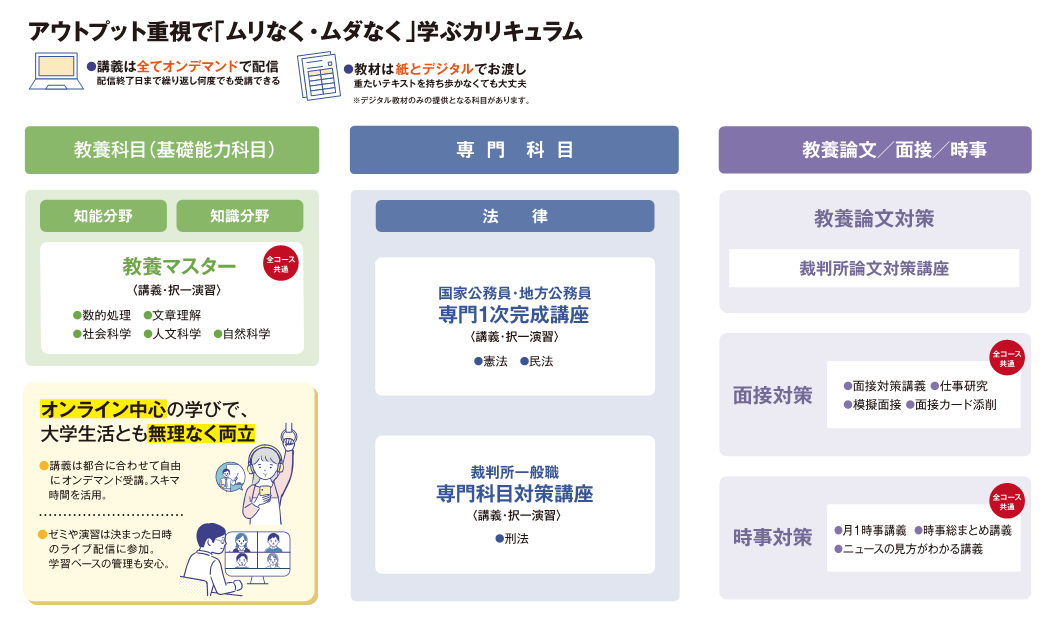「公務員試験は裁判所だけ」という方のための専願コース。必要最小限の内容をコンパクトに学ぶことができます。