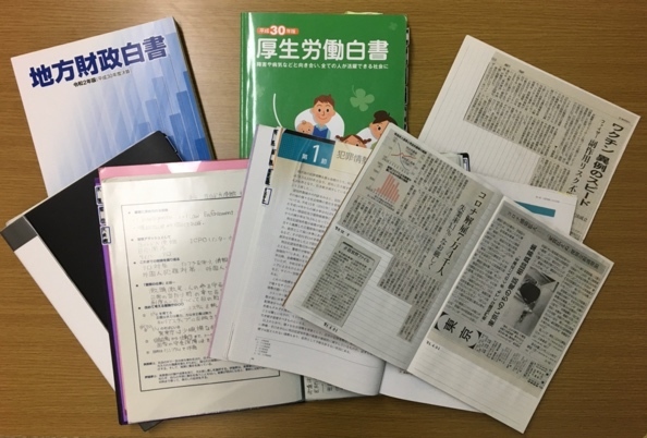 ▲勉強会で使用していた説明会資料、白書、新聞記事など