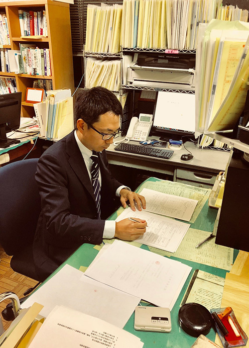 現在の仕事内容は、不動産登記や商業登記、裁判業務や成年後見業務、不在者や相続財産管理人業務など幅広く業務を行っています。