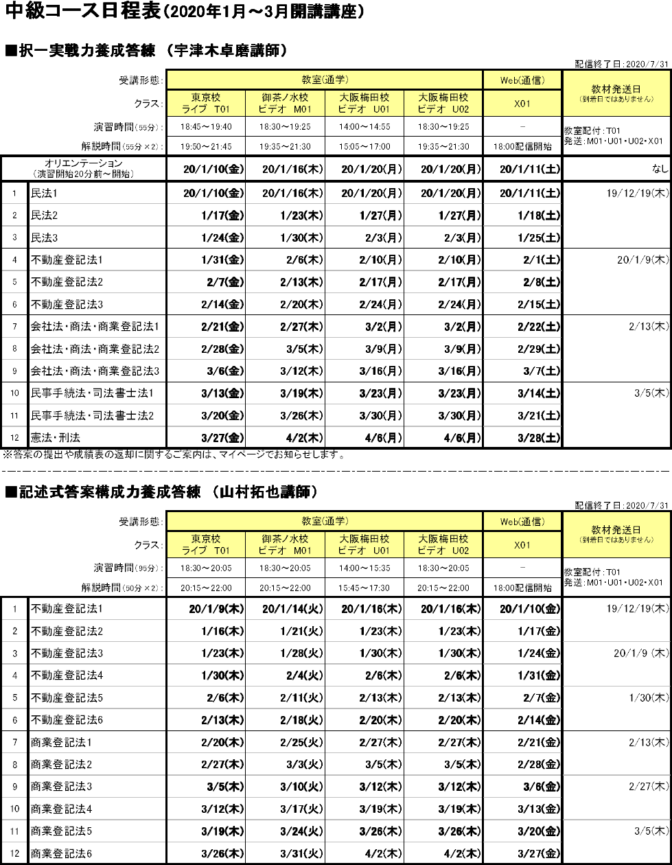 | 教室(通学)東京校ライブクラス &教室(通学)御茶ノ水校ビデオM01クラス |