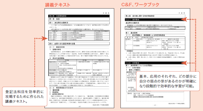 第一段階である「基準点突破」のための学習は、不登法では、連件申請の出題に対応して答案のフレームに相当する「申請の個数及び申請の順序」の判断を学習することが必要となります。また、商登法では白紙答案を避けるため全てが登記できると仮定しての「暫定答案」の作成を学習することが必要です。これらの学習では、答案のフレームを決定し、ドラフト(設計)するための学習となります。本講座は、ABCのランク分類により整理した事例(不登124、商登120)のうち、ABランクの事例(設問)を中心に、基本から効率的にFコンを学習し、記述式の基準点を確保することを目指します。