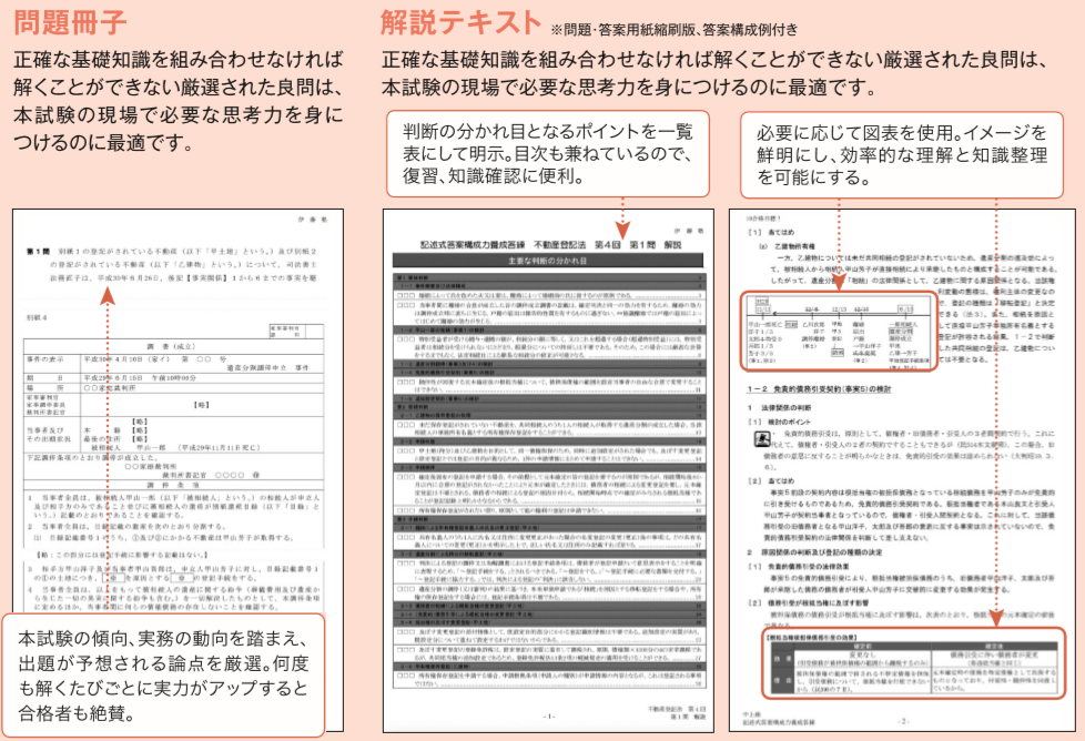 本試験と同様に、連件・一括申請を扱う記述式総合問題を使用します。本試験を突破するために必要なエッセンスが詰まった密度が濃い問題と講義は、その学習効果の高さに定評があります。
