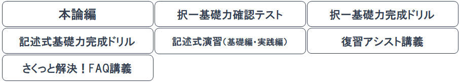 また、全講義が終了した後の本試験直前期においても、復習アシスト講義を利用することにより、短時間で全科目の重要ポイントの総復習をすることができます。