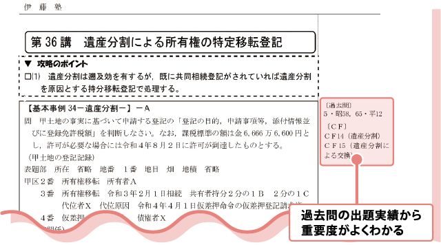 ● 「出題の傾向と対策の明示」「図表を用いた知識の総整理」「出題実績の明示」「理解しづらい判例等の平易な記載」などを盛り込んだ解説冊子で、1問の演習から重要ポイントをまとめて押さえられる!