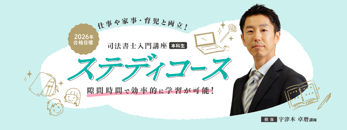 まとまった時間はとれないけど「司法書士になりたい」という気持ちは人一倍ある、そういった皆さんの気持ちに答え、合格へ導いていきます。是非一緒に頑張りましょう!