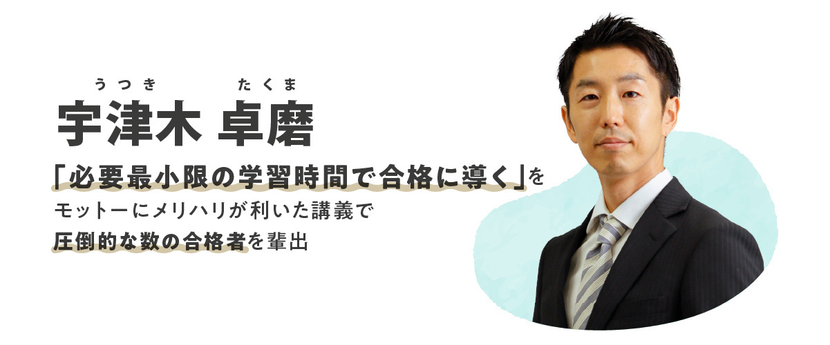 宇津木講師のメリハリある講義は、私のような兼業受験生にとって、助けになりました。「重要」「暗記」「他のものと比較」という分け方で、