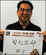 それから、家族にはいろいろと心配をかけましたが、文句を言うどころか後押ししていただき、良い意味で緊張感を持ち続けることができました。また、そのほかにも様々なご協力をいただきありがとうございました。それから、趣味や同級の友人、福満クラスで一緒に勉強した方々もいろいろと相談にのっていただいたり、コミュニケーションをとっていただいたりしたことにより精神的にも落ち着いて勉強を続けることができました。ありがとうございました。今後ともよろしくお願いします。