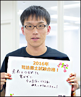 また、伊藤塾京都校のスタッフの方々も長い間支えてくれました。片岡さんには「入門講座」の時からいろいろと話を聞いていただき、受験生生活が長引き、もう辞めたいと思った時も、私の世間知らずな話に耳を傾けてくれました。伊藤塾は講師や講座の内容が良いということは多く語られますが、それと同じくらいスタッフの方も素晴らしい方が多いです。本当にありがとうございました。しっかりした司法書士になりたいと思います。