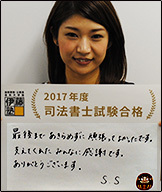 もう続けられないと弱気になったときは、自習室にいる人たちや、自習室にいて合格されていった人たちの努力している姿を思い出しました。また、いつも応援してくれている家族や、友人のことを思い出しました。合格したことを報告した時は、自分もうれしかったですが、応援してくれていたみんながすごく喜んでくれたことが、一番嬉しかったです。司法書士としてはこれからスタートです。今のこの気持ちを忘れず、社会に貢献できるように頑張りたいと思います。