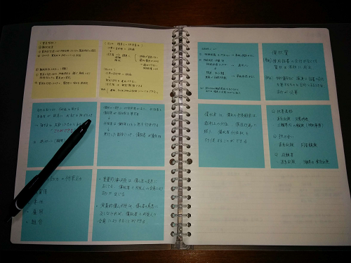 何度も間違えてしまう事項は、付箋に書いてノートに貼っていきました。模試や試験の会場にはこのノートだけ持っていきました。