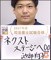 「私が、遠くをみていたならば、それは巨人の上に乗っていたからだ」アイザック・ニュートンの言葉です。私は、この司法書士試験を通して、多くの人に支えられて来ました。両親、応援してくれる友人、そして、伊藤塾です。そんな「巨人」の肩の上にのり、合格することができ、新しいスタートラインに立っています。次は、僕が「巨人」になる番です。法律の知識を必要とし、自分を頼ってくれる方々を肩の上にのせ、しっかりと一歩一歩、歩んでいこうと思います。ありがとうございました。